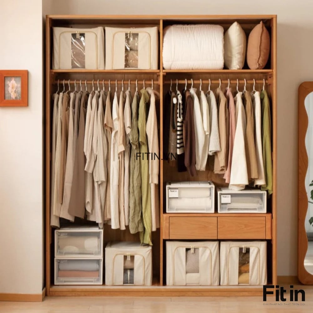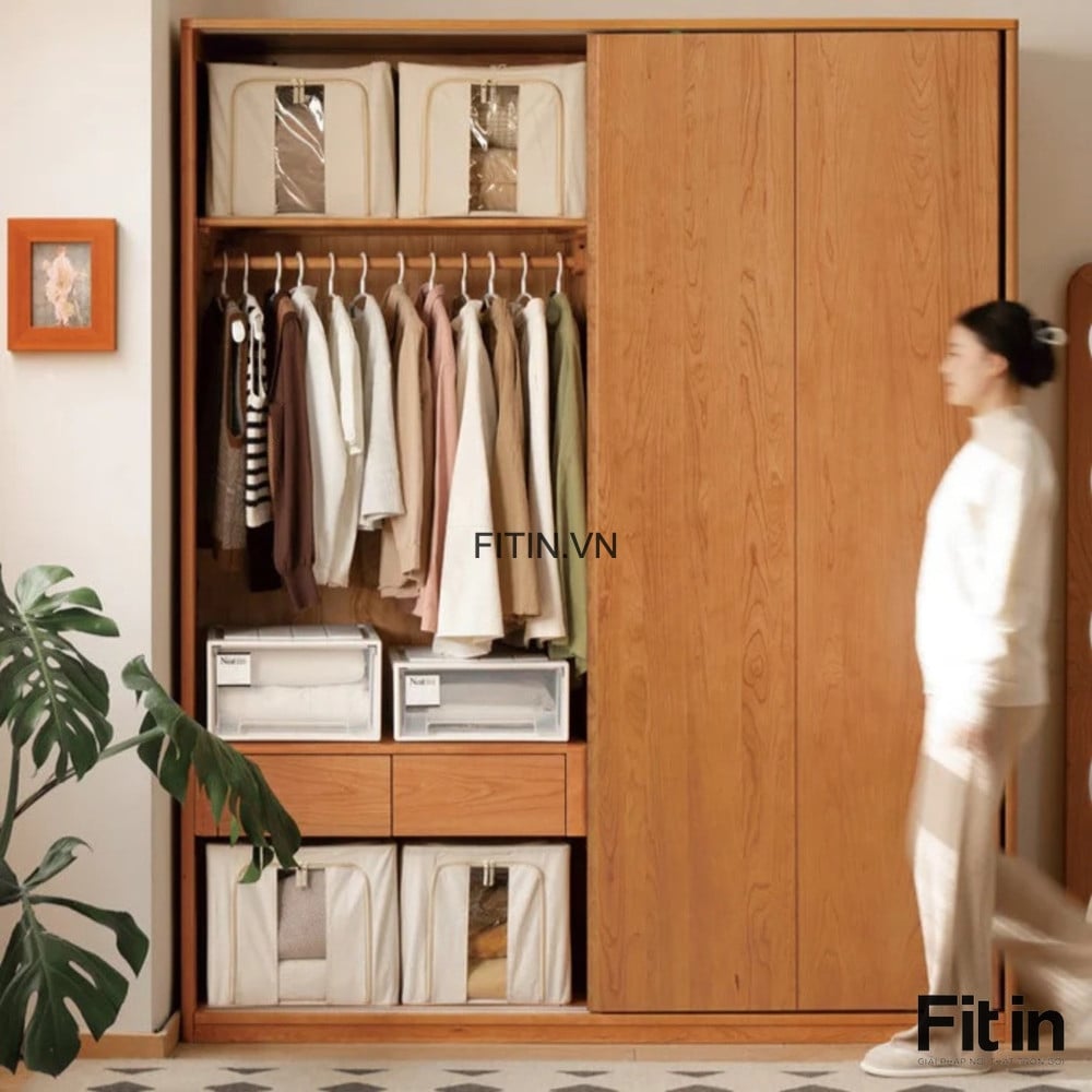 Tủ Quần Áo Phòng Ngủ Gỗ Sồi Tự Nhiên Cánh Lùa Tối Ưu