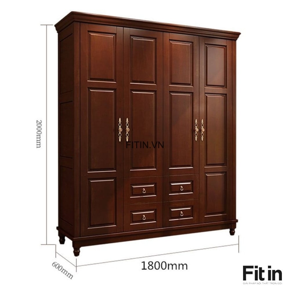 - Tủ 4 cánh: 180 x 60 x 200cm