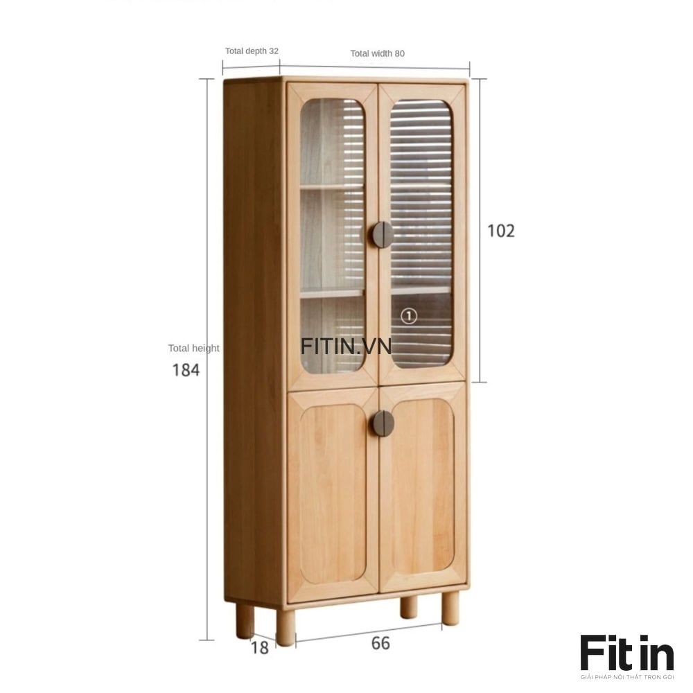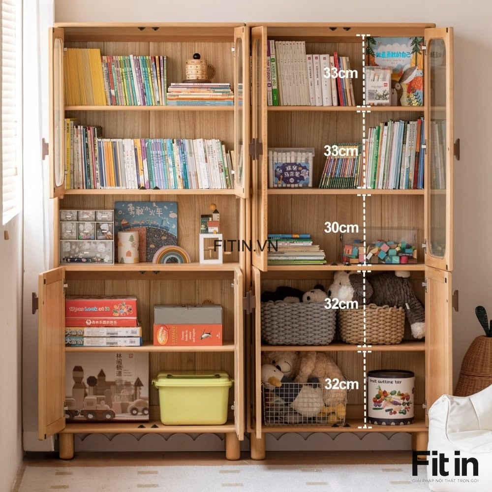 Tủ Sách Cho Bé Gỗ Sồi Cánh Kính Thiết Kế Đa Năng Hiện Đại