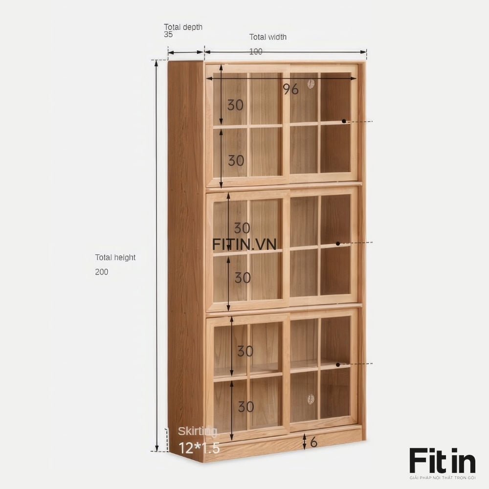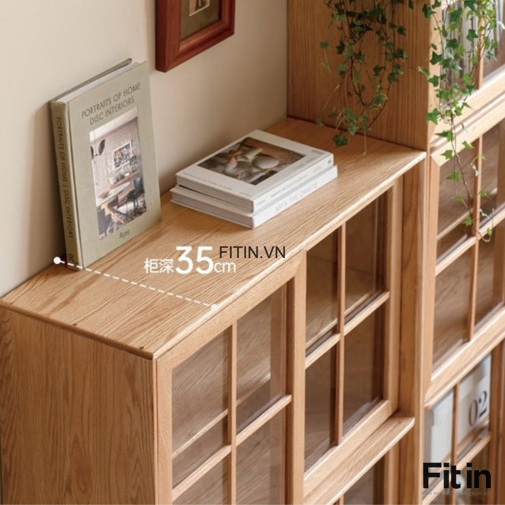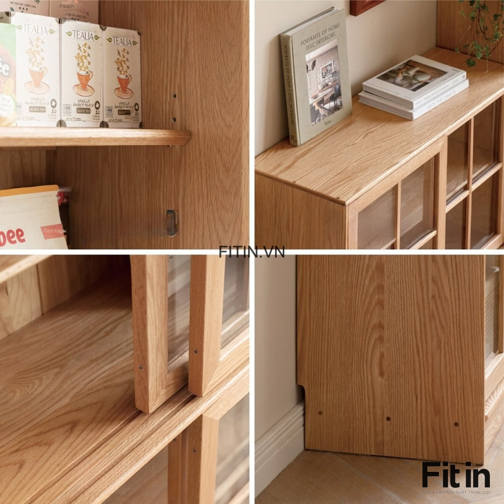 Chất Liệu: Gỗ sồi tự nhiên, cánh kính khung gỗ