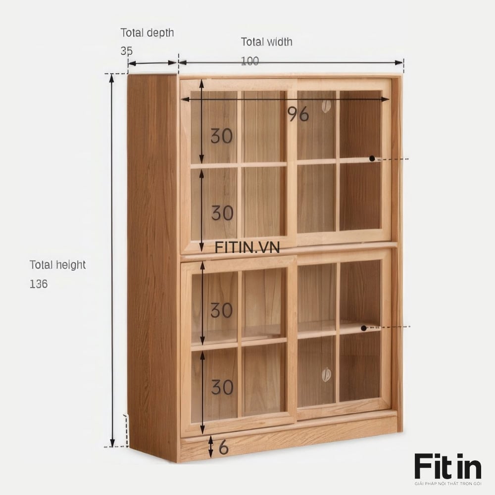- Tủ 2 tầng: 100 x 35 x 136cm