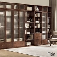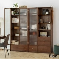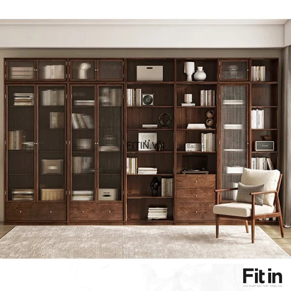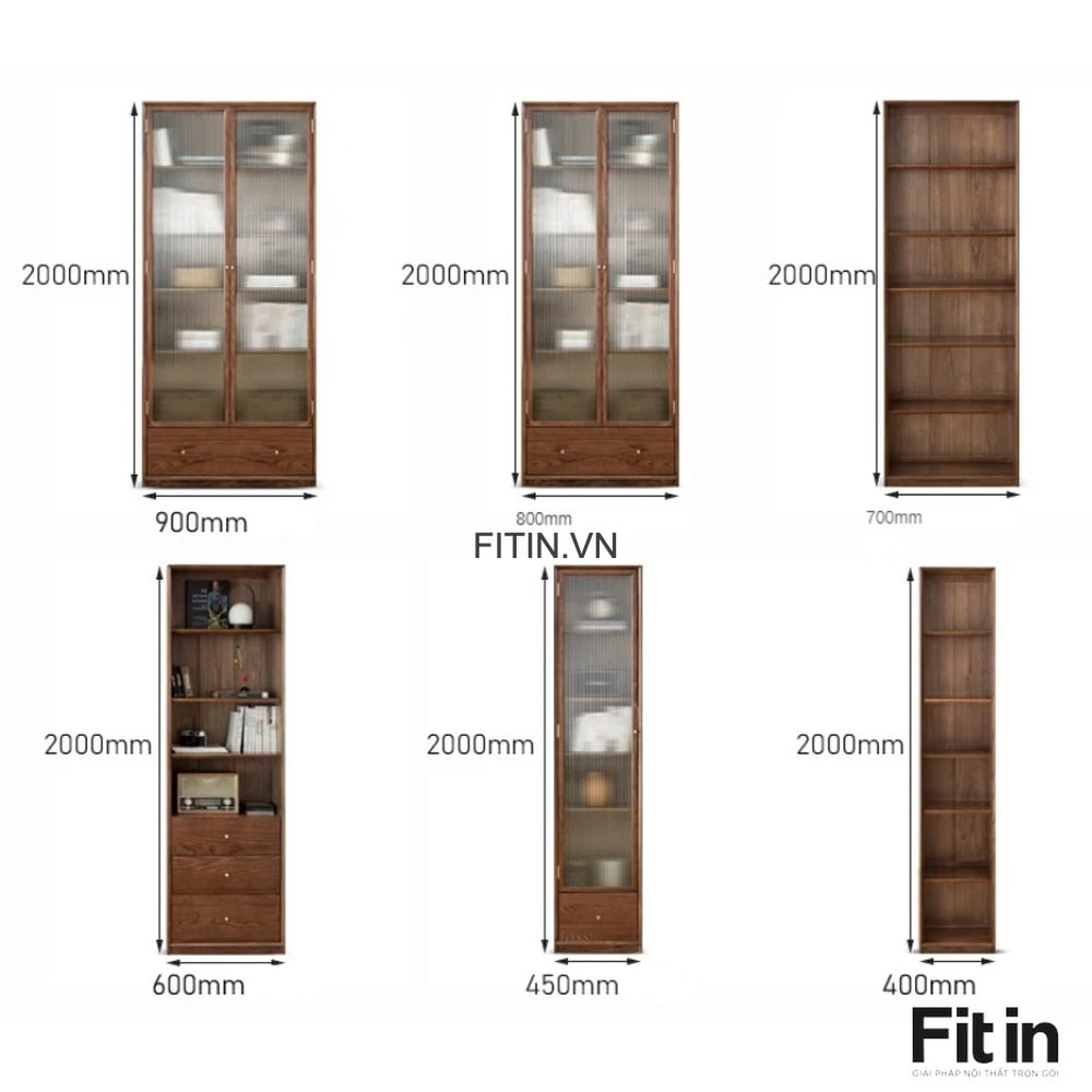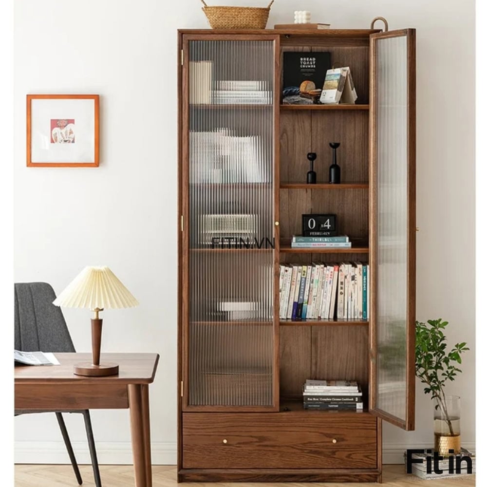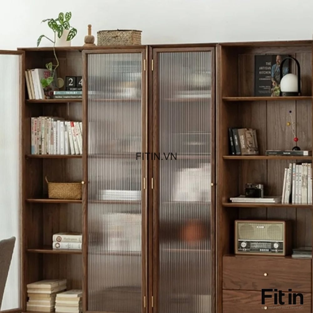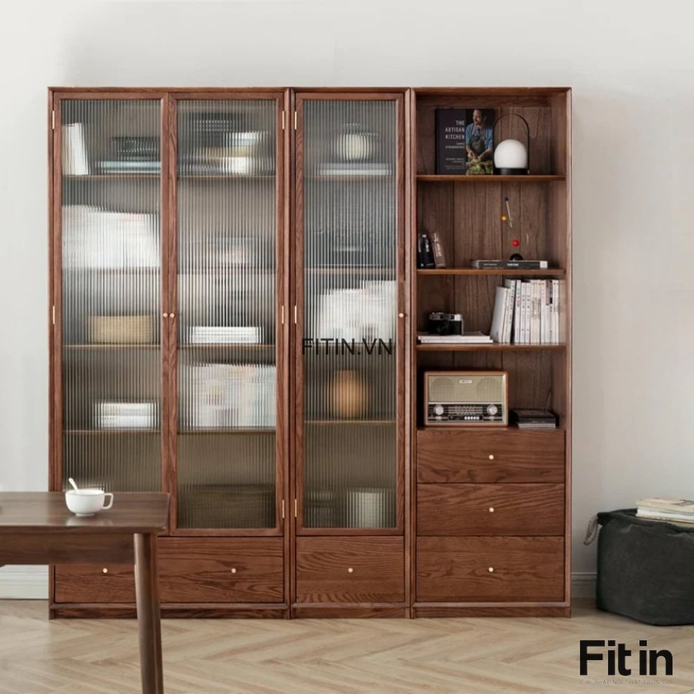Tủ Sách Đứng Gỗ Sồi Cánh Kính Sọc Phong Cách Hiện Đại