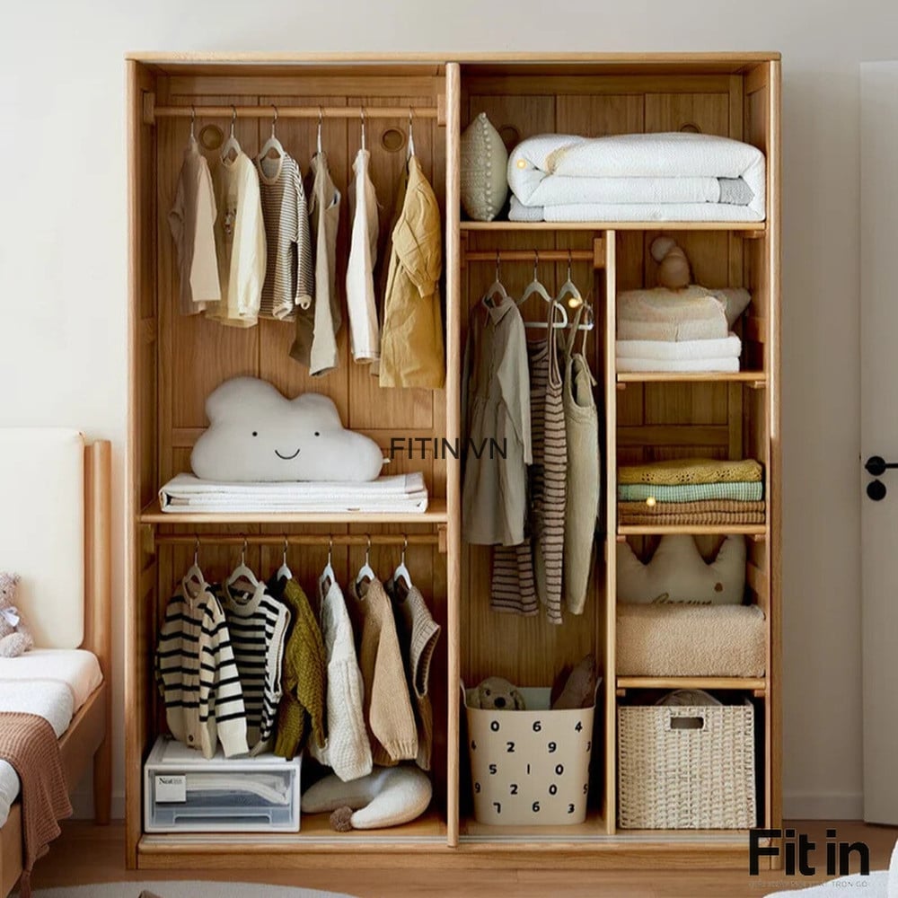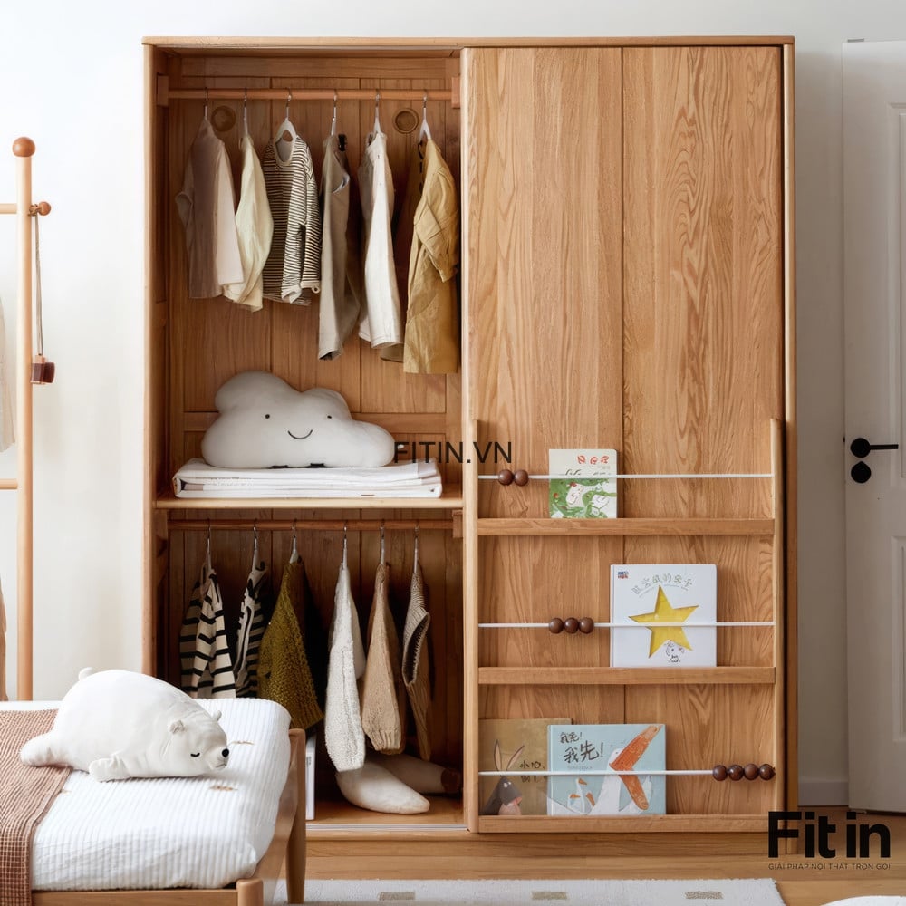 Tủ Treo Quần Áo Cho Bé Gỗ Tự Nhiên Nhiều Ngăn Tiện Lợi
