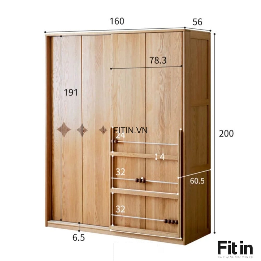 Kích thước: 140 x 60 x 200cm (rộng x sâu x cao)