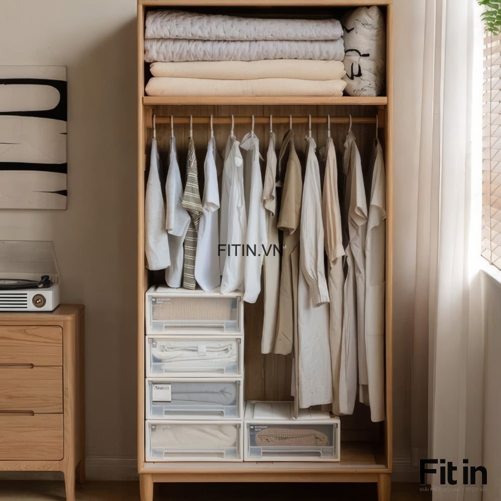 Tủ Treo Quần Áo Trẻ Em Gỗ Tự Nhiên Kiểu Chân Cao Nhỏ Gọn