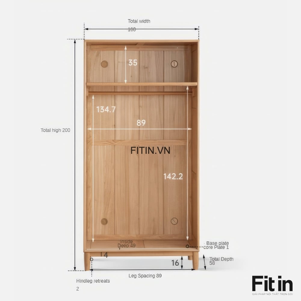 Kích thước: 100 x 58 x 200cm(rộng x sâu x cao)