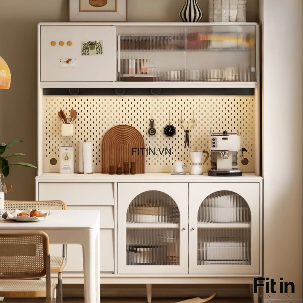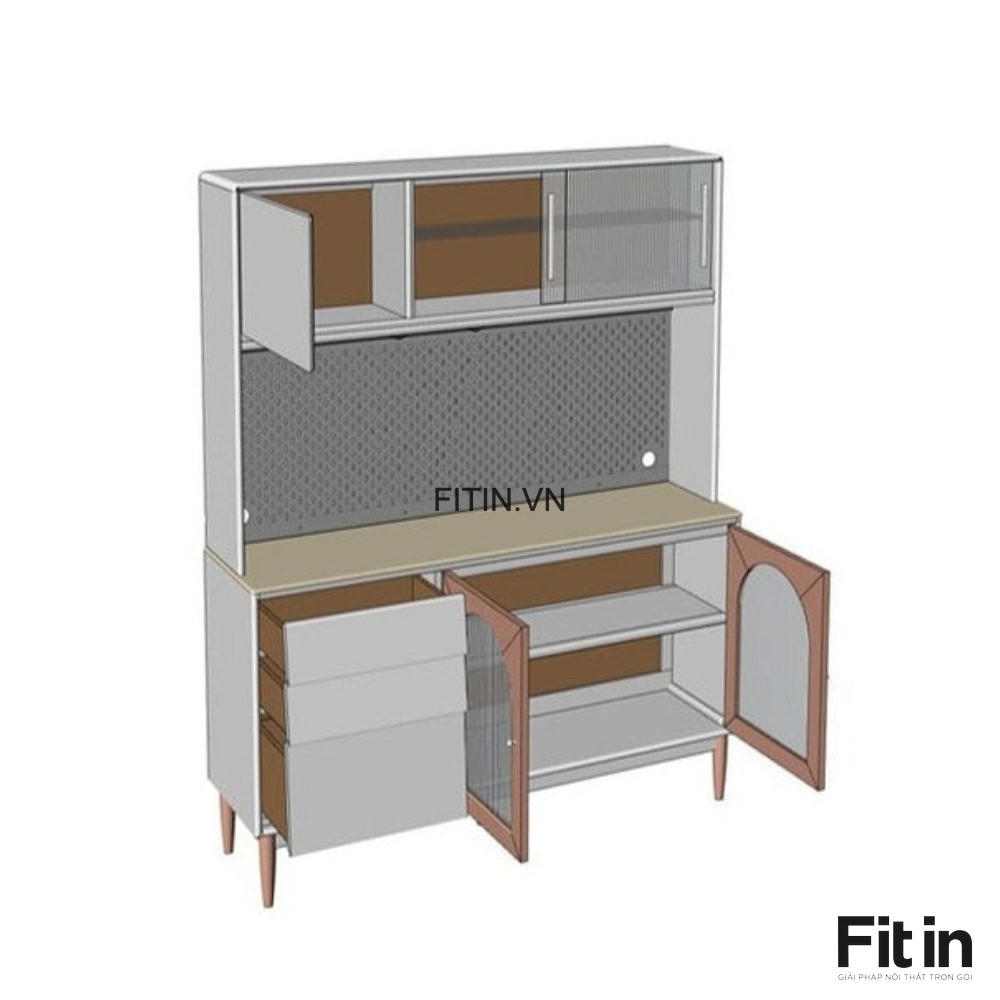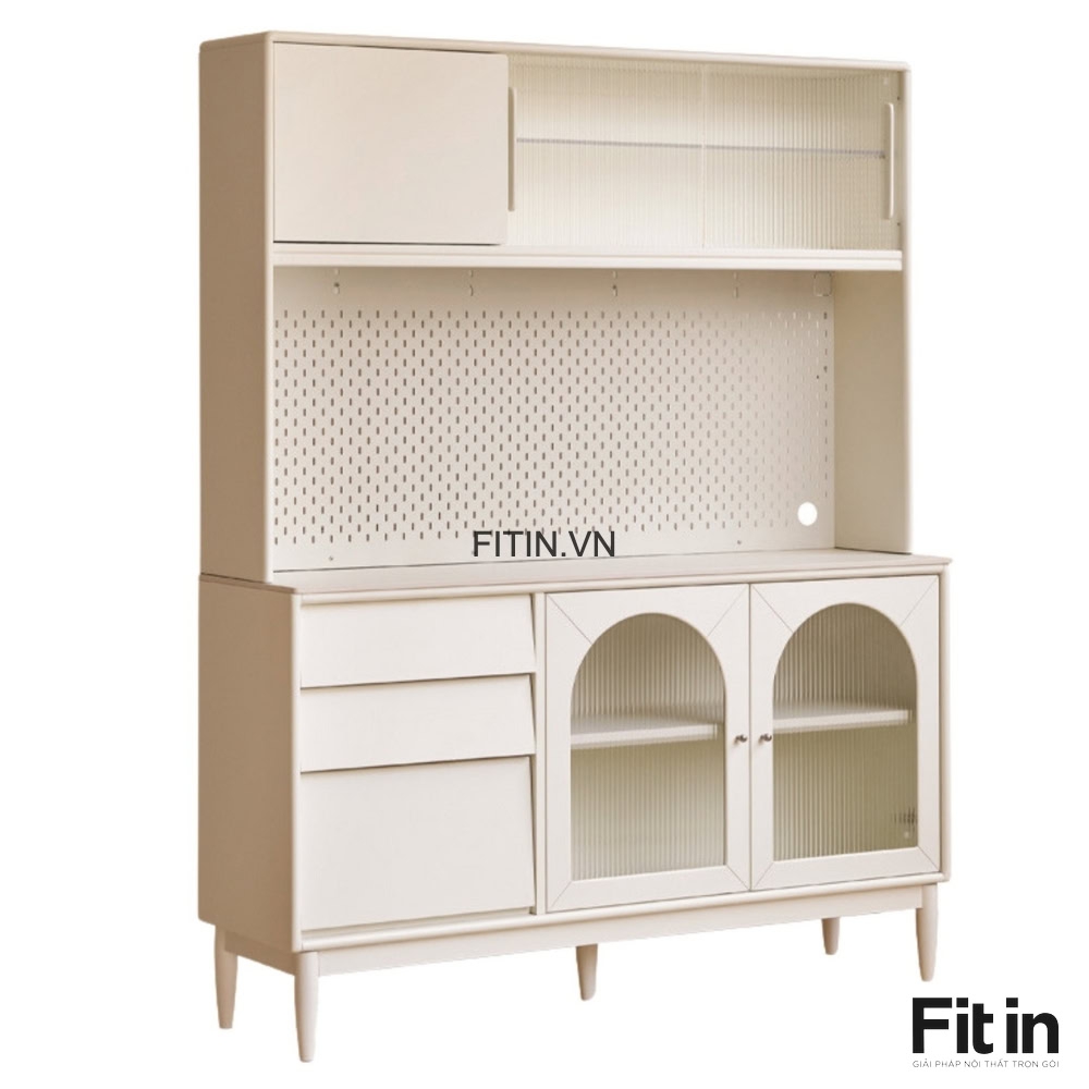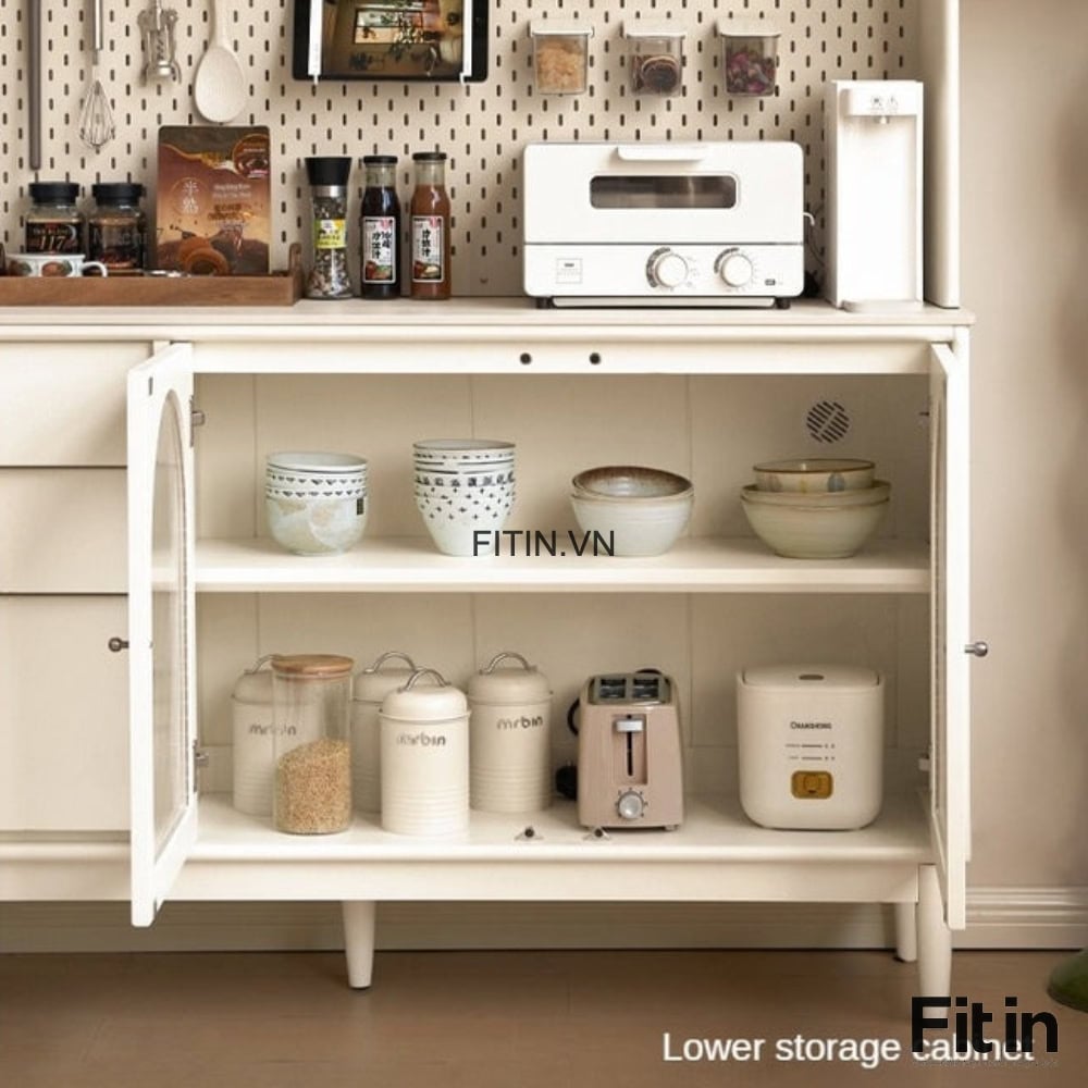 Tủ Úp Chén Bát Gia Vị Gỗ Sồi Tự Nhiên Sơn Trắng Kiểu Chân Cao