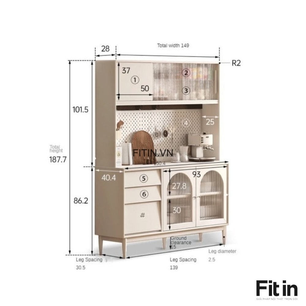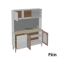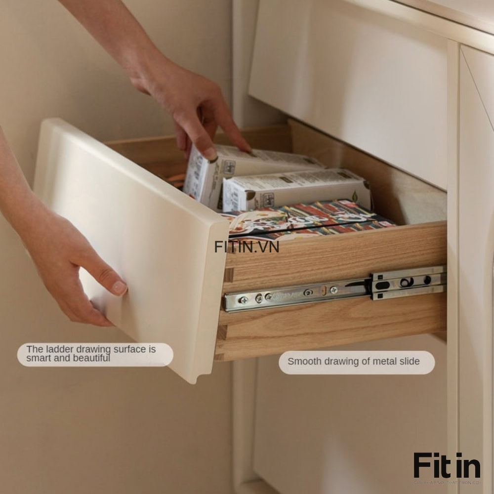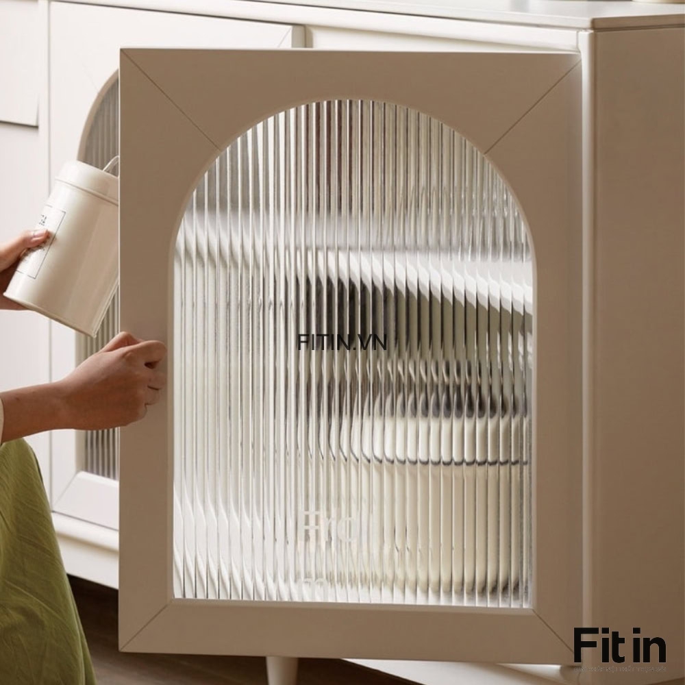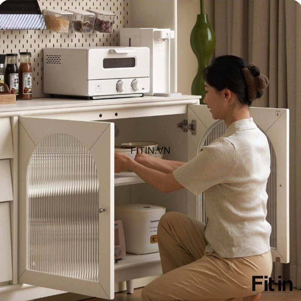 Tủ Úp Chén Bát Gia Vị Gỗ Sồi Tự Nhiên Sơn Trắng Kiểu Chân Cao